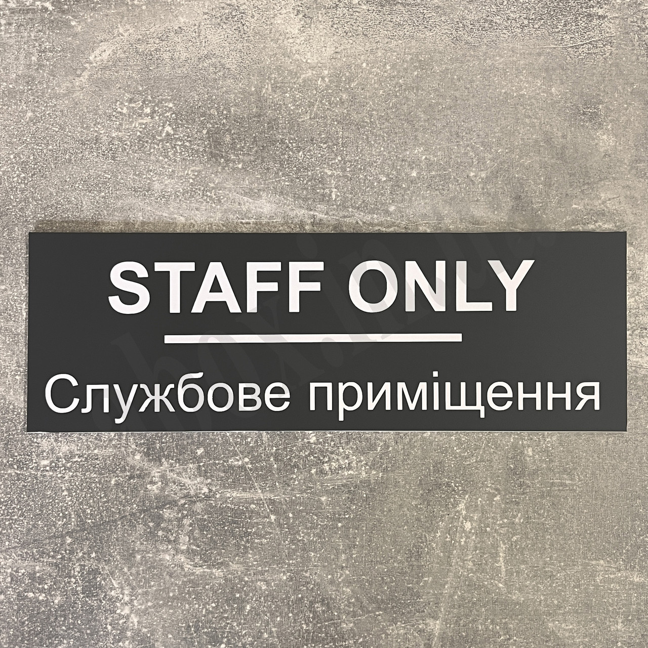 Інформаційна табличка "СТАФ ОНЛІ" або "STAFF ONLY" дасть зрозуміти вашим відвідувачам, що в це приміщення клієнту вхід заборонений.